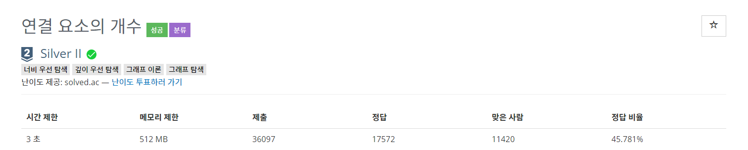 방향 없는 그래프가 주어졌을 때, 연결 요소 (Connected Component)의 개수를 구하는 프로그램을 작성하시오.