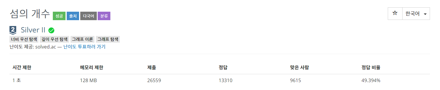 dfs를 한번 사용할때마다 1개의 섬을 살펴보기 때문에 1씩 더해준다.