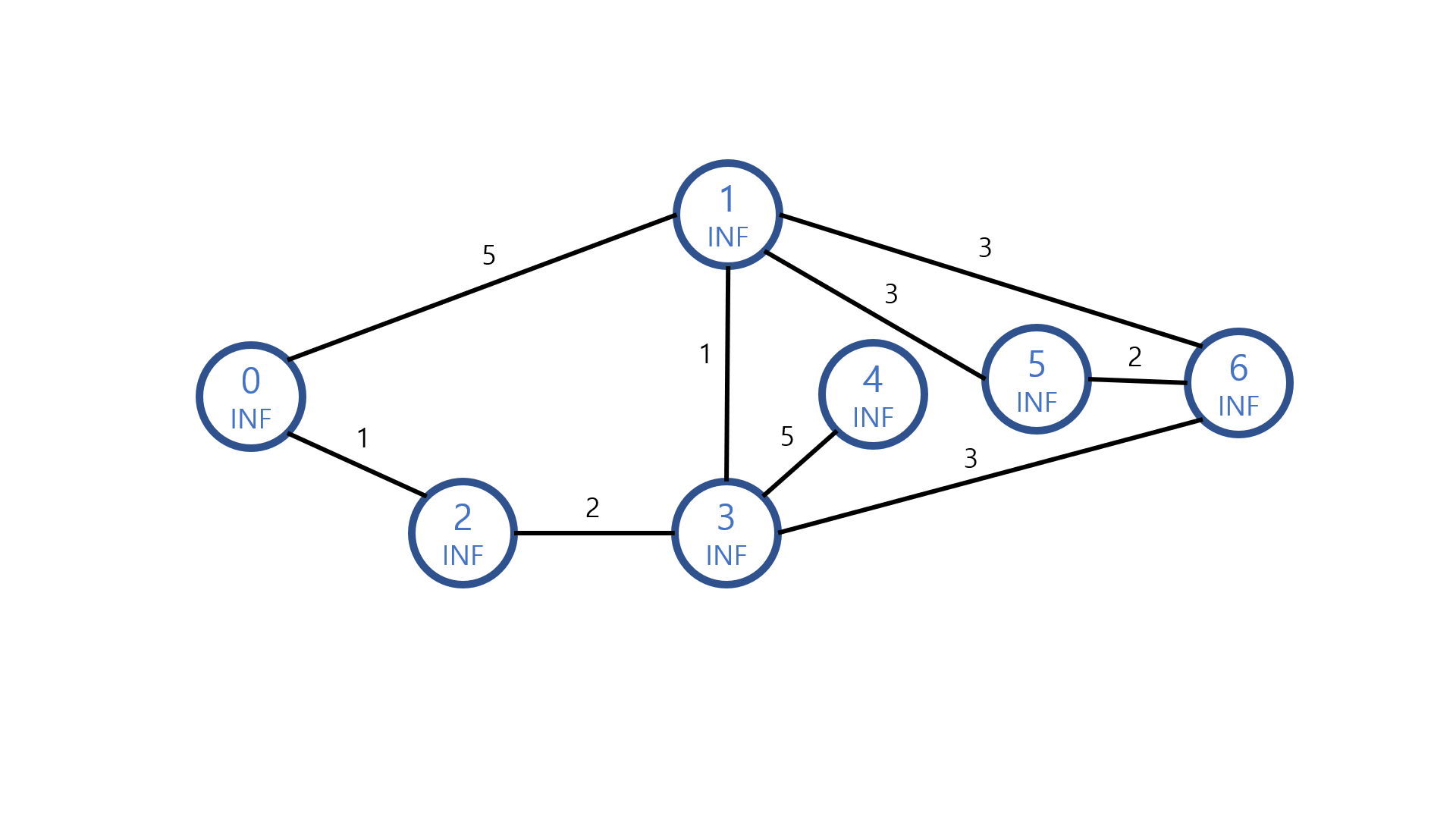 출발 노드 0의 최소 비용을 0으로 초기화한다.