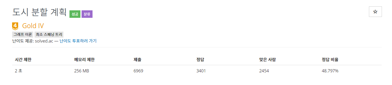 마을의 이장은 위 조건을 만족하도록 길들을 모두 없애고 나머지 길의 유지비의 합을 최소로 하고 싶다.