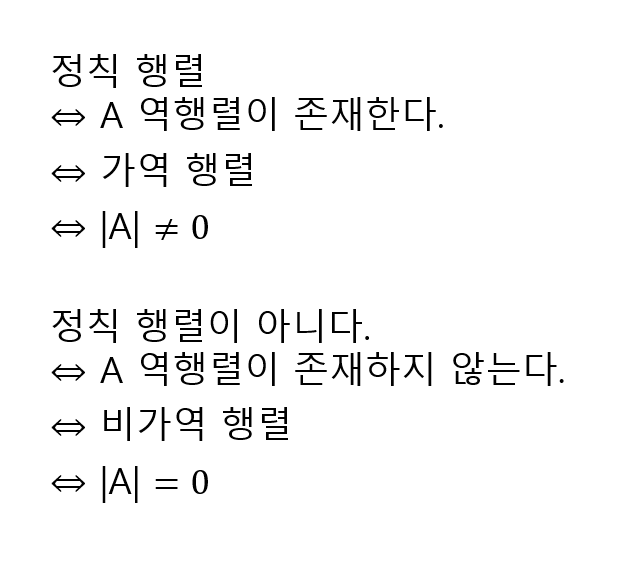 | 여인수 또는 여인자(cofactor) Cij | 소행렬식에 i+j 의 규칙에 따라 부호(- 또는 +)를 붙여 주는 것 |