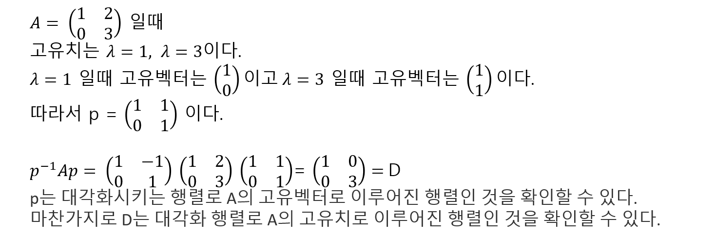 고유값과 고유벡터를 구하는 최종 목표는 대각화 즉 거듭 제곱을 용의하게 계산하기 위함이라고 생각하면 쉽다.