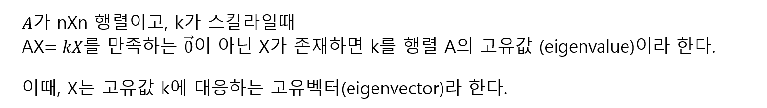 det(A-kI) = 0을 만족하는 k값이 고유값이다.