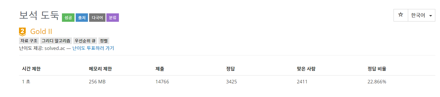 해당 문제는 그리디 문제로 우선순위 큐를 이용해 해결했다.