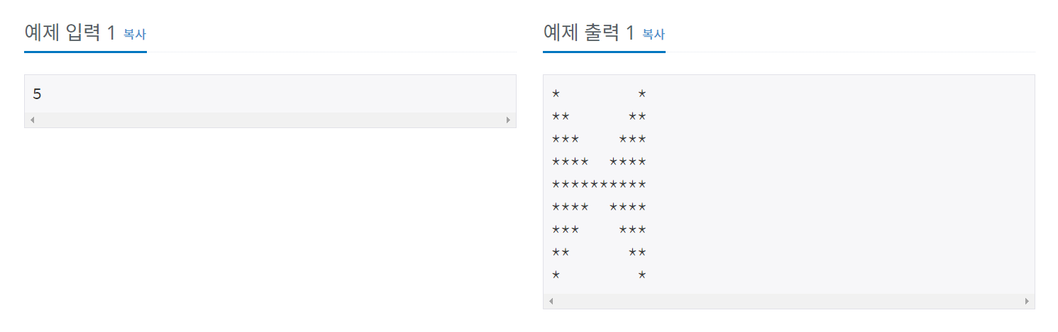 첫째 줄부터 2×N-1번째 줄까지 차례대로 별을 출력한다.