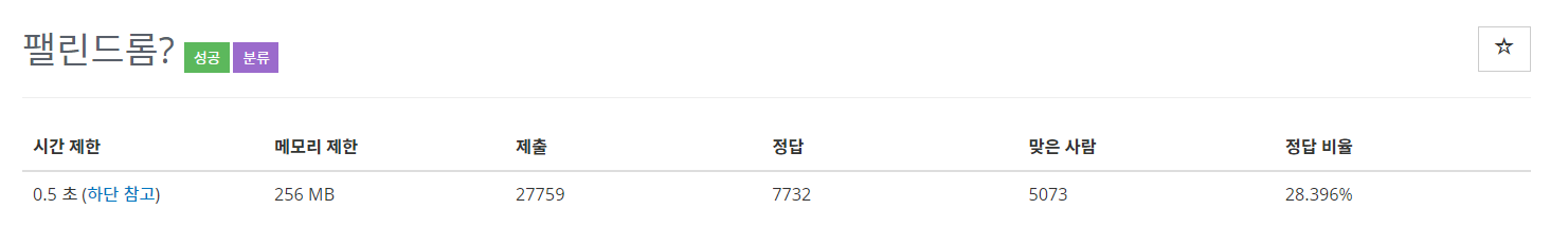 다만 이문제의 시간 제한이 0.5초인 것을 감안하면 테스트 케이스가 입력됐을 때마다 전체를 돌며 확인하면 안 된다는 결론을 낼 수 있다.