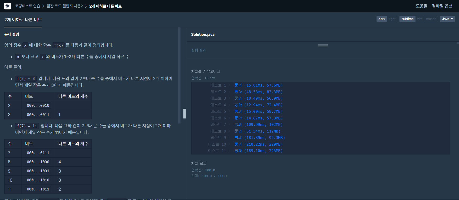 [프로그래머스/자바] 2개 이하로 다른 비트 본문