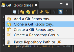 3. Git Repository 에서 오른쪽 마우스로 Clone a Git Repository 클릭