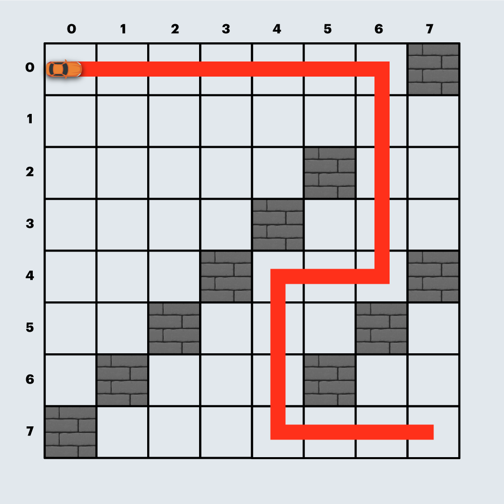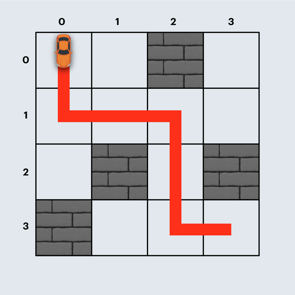 - board는 항상 출발점에서 도착점까지 경주로를 건설할 수 있는 형태로 주어집니다.