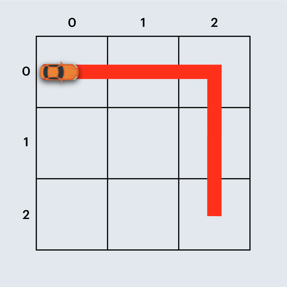 경주로의 출발점은 (0, 0) 칸(좌측 상단)이며, 도착점은 (N-1, N-1) 칸(우측 하단)입니다. 죠르디는 출발점인 (0, 0) 칸에서 출발한 자동차가 도착점인 (N-1, N-1) 칸까지 무사히 도달할 수 있게 중간에 끊기지 않도록 경주로를 건설해야 합니다.