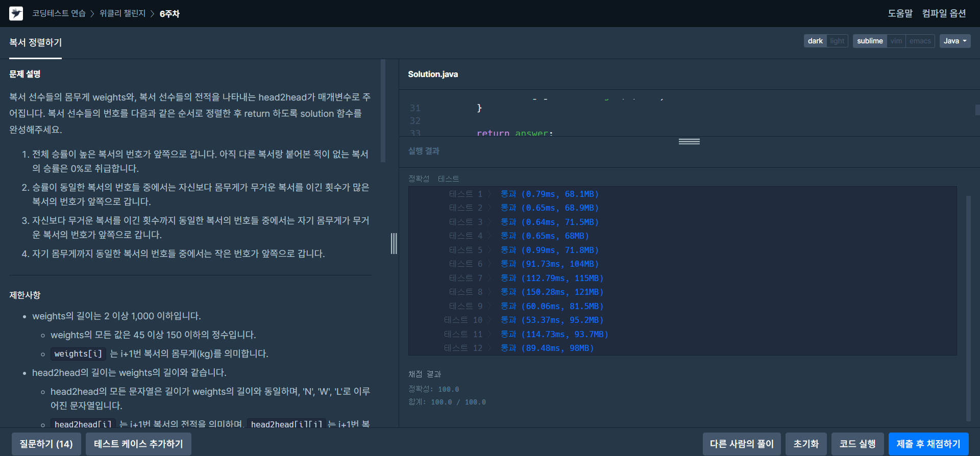 [프로그래머스/자바] 위클리 챌린지 6주차 복서 정렬하기 본문