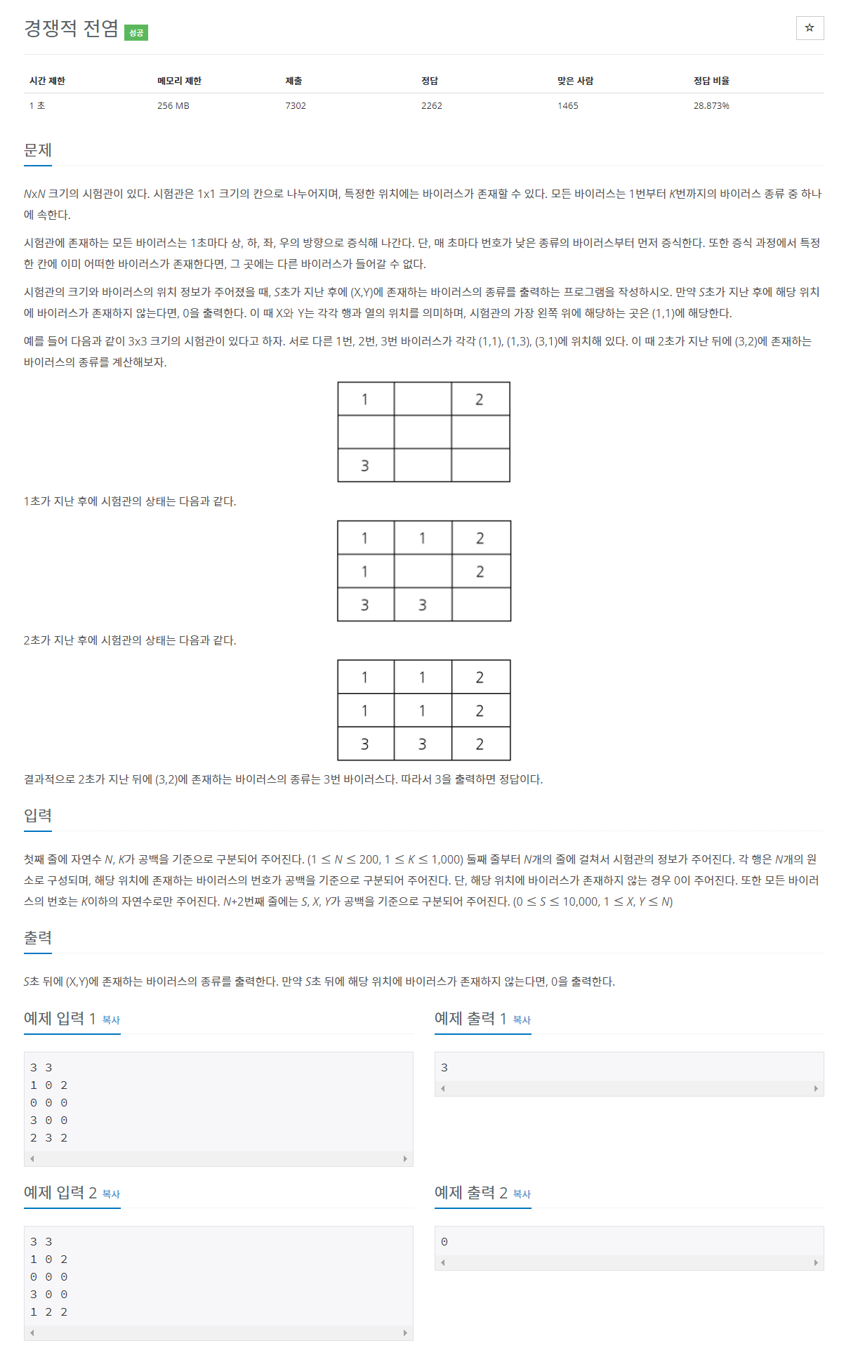 바이러스가 퍼질때 인덱스에 따라 우선적으로 퍼지는 바이러스가 정해저 있기 때문에 우선순위큐를 사용했다.