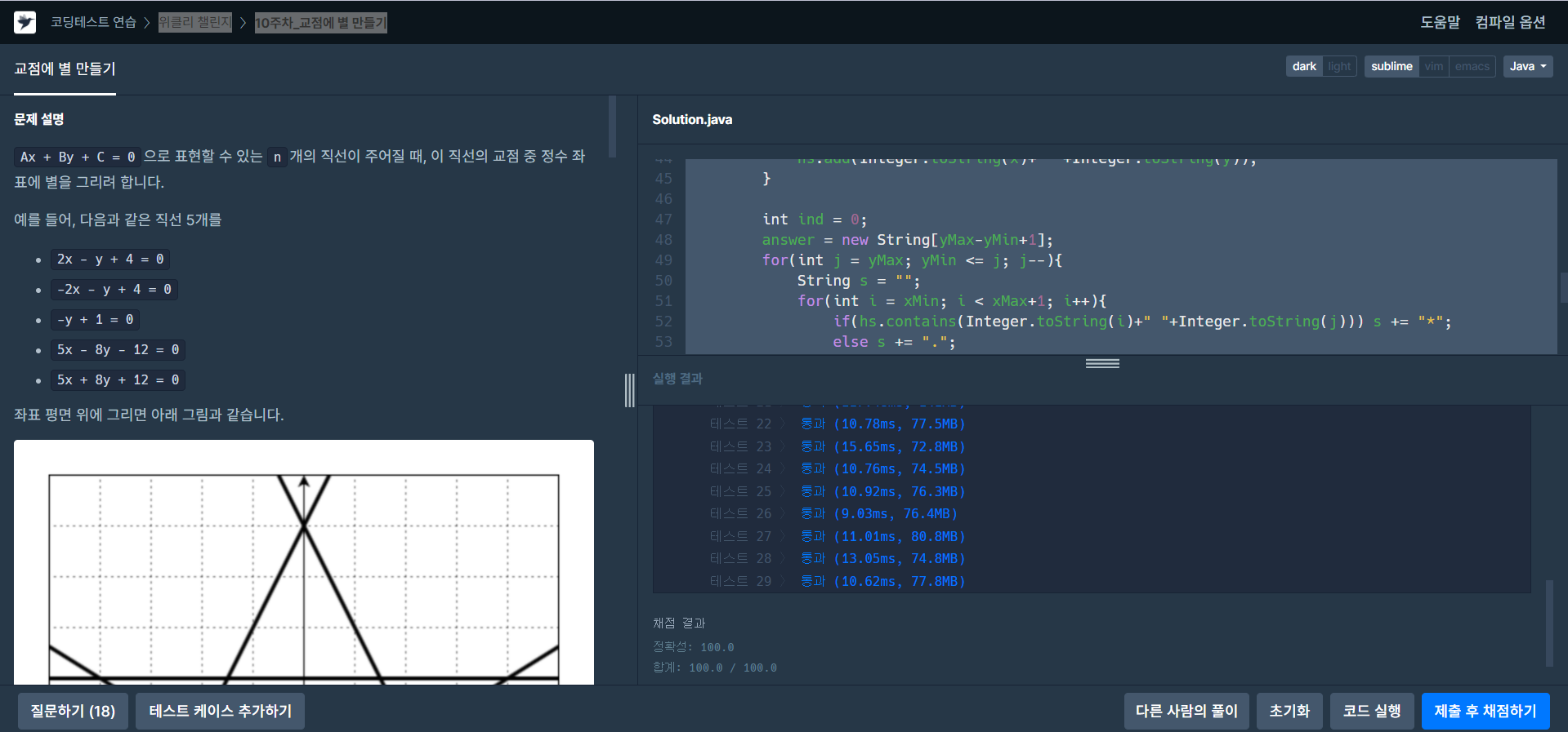 [프로그래머스/자바] 위클리 챌린지 10주차 교점에 별 만들기 본문