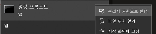 명령 프롬프트를 관리자 권한으로 실행한다.