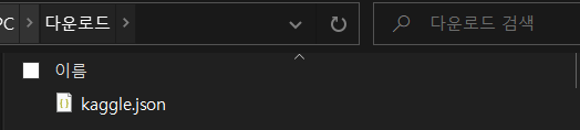 2-2 본인 PC 다운로드 폴더 > kaggle.json 파일 download 확인
