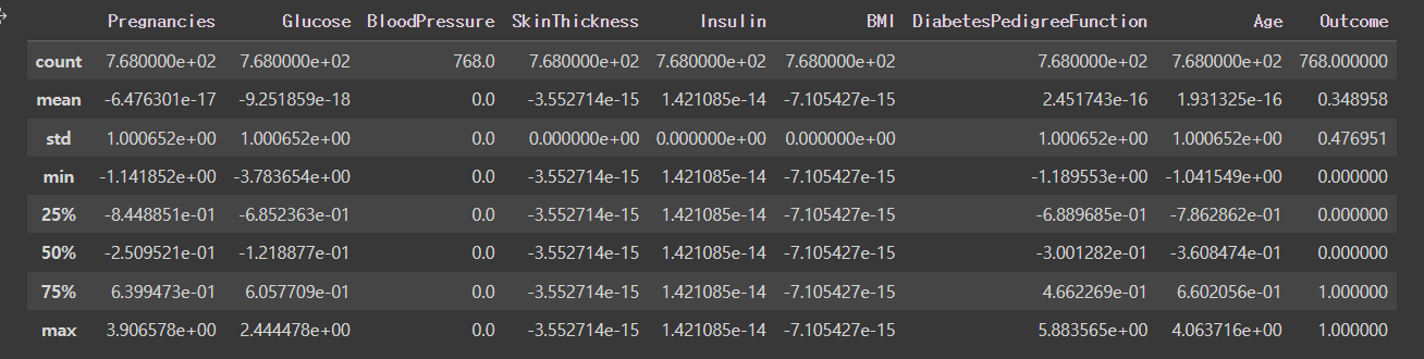 diabetes_data[cols] = scaler.fit_transform(diabetes_data[cols])