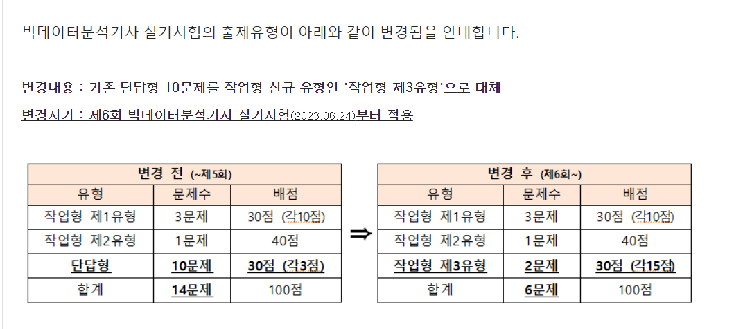 실기 유형이 2023.06.24 시행되는 제 6회 빅데이터분석기사부터 변경되었다!