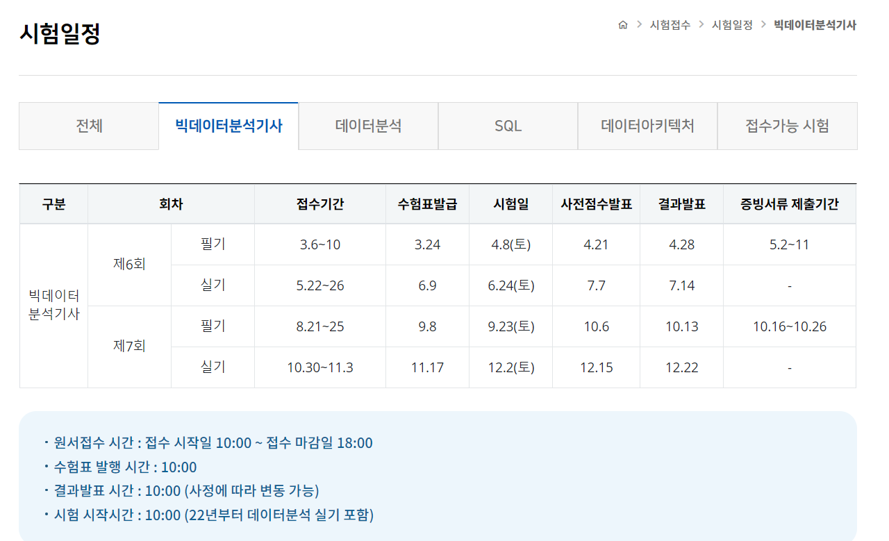 빅분기는 데이터 자격시험에서 접수할 수 있다.