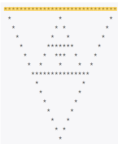 4. 이전 삼각형 앞에 *(count 개수만큼 빈칸)*을 추가하고 마지막 제일 위에 꼭짓점이 되는 *을 추가한다.