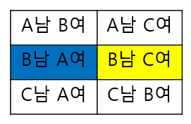 즉, C남자와 A여자가 짝이 되는 수 = A여자의 총 수 - B남자와 A여자가 짝이 되는 수