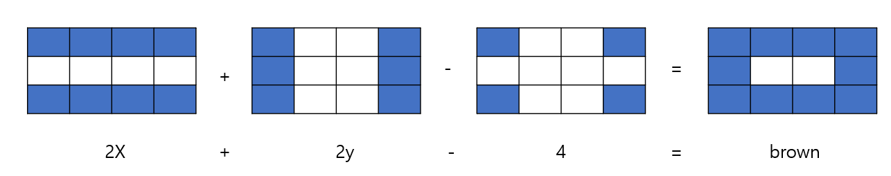 위와 같은 식을 이항하여 정리하면 x+y = (brown+4)/2 라는 식이 완성된다.